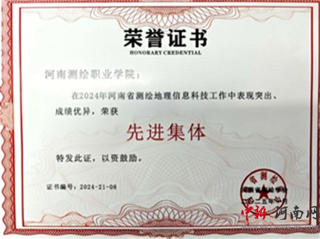 河南測繪職業(yè)學(xué)院榮獲“2024年度河南省測繪學(xué)會先進集體”