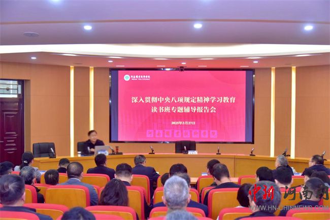中新河南網(wǎng)3月30日電(隋納新) 按照校黨委關(guān)于開(kāi)展深入貫徹中央八項(xiàng)規(guī)定精神學(xué)習(xí)教育工作安排,3月27日至28日,河南職業(yè)技術(shù)學(xué)院采取集中學(xué)習(xí)、個(gè)人自學(xué)和交流研討相結(jié)合的形式,舉辦為期兩天的深入貫徹中央八項(xiàng)規(guī)定精神學(xué)習(xí)教育讀書(shū)班。校黨委書(shū)記厲勵(lì)作開(kāi)班講話(huà)。校黨委副書(shū)記、校長(zhǎng)夏新顏主持開(kāi)班儀式。全體校領(lǐng)導(dǎo)及各單位黨政負(fù)責(zé)同志參加讀書(shū)班。