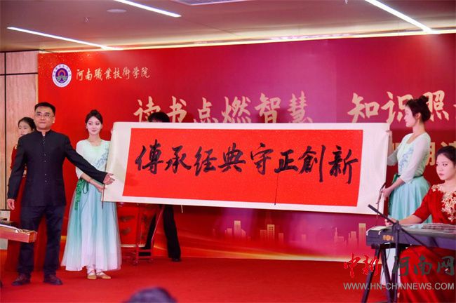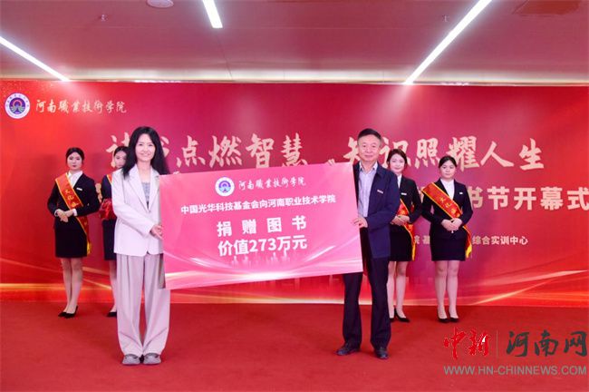 夏新顏在致辭中對(duì)中國(guó)光華科技基金會(huì)向?qū)W校捐贈(zèng)圖書表示感謝,并介紹了學(xué)校全民閱讀工作的傳承與發(fā)展。她指出,近年來,學(xué)校堅(jiān)持將閱讀作為立德樹人、培根鑄魂、啟智增慧的重要途徑,深化“以書育人、以文化人”思政模式,探索“黨建+文化浸潤(rùn)”閱讀推廣路徑,重塑書香河職育人新生態(tài)。通過綿綿久久的用功、持續(xù)不斷的發(fā)力,講政治、出精品,思想旗幟更加鮮亮;強(qiáng)活動(dòng)、亮品牌,河職特色更加彰顯;抓普惠、建平臺(tái),真正惠及廣大師生;拓空間、創(chuàng)形態(tài),全力滿足閱讀需求。如今的“書香河職”,正以“四高四爭(zhēng)先”戰(zhàn)略為引領(lǐng),在中原大地書寫以文化人、以文興教的時(shí)代答卷。