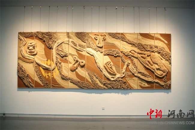 不同展區(qū)的作品各具特色,“黃河原生”展區(qū)的作品以黃河文化遺產(chǎn)為核心,通過天然材料編織與大地肌理的重構(gòu),喚醒人們對(duì)黃河文明的原生記憶;“非遺新生”展區(qū)聚焦中原非遺文化,借助數(shù)字技術(shù)探索傳統(tǒng)IP的當(dāng)代轉(zhuǎn)化,展現(xiàn)傳統(tǒng)文化的全新活力;“生態(tài)共生”展區(qū)則將工業(yè)痕跡轉(zhuǎn)化為生態(tài)警示符號(hào),通過交互裝置和沉浸式空間,構(gòu)建人地共生的哲學(xué)場(chǎng)域,引發(fā)觀眾對(duì)宇宙生態(tài)藝術(shù)的深刻共鳴。