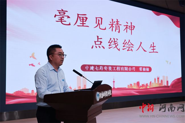 中建七局安裝工程有限公司項目總工程師,河南省勞動模范、河南省五一勞動獎章獲得者、河南省技術能手霍楠楠,分享了他在14年間完整參建了登封S323省道改建項目、鄭州港區(qū)隧道項目、鄭州彩虹橋項目等民生工程,在測量的經(jīng)緯中,用堅守丈量人生坐標,用勞動贏得尊重和榮譽。他從基層測量員到勞動模范的蛻變歷程,激勵著在場的每一位師生。
