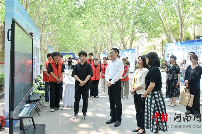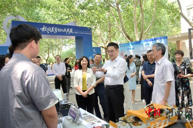 中新河南網(wǎng)5月29日電(隋納新 靳兵) 為深入提升學(xué)校美育工作水平,激發(fā)師生科技創(chuàng)新活力,5月28日上午,河南職業(yè)技術(shù)學(xué)院“文化鑄魂 科技賦能”校園美育文化成果暨“挑戰(zhàn)杯”大學(xué)生課外學(xué)術(shù)科技作品展在周始路舉行。校領(lǐng)導(dǎo)厲勵(lì)、夏新顏、李玉峰、朱永寬現(xiàn)場(chǎng)參觀指導(dǎo),并與師生深入交流。學(xué)校黨政辦公室、黨委宣傳部、校團(tuán)委、馬克思主義學(xué)院等相關(guān)部門負(fù)責(zé)人一同參觀。