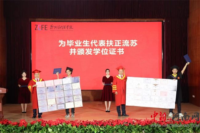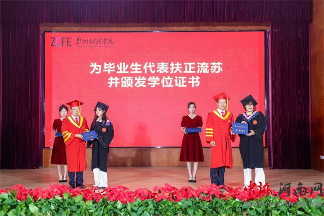 監(jiān)事會(huì)副主席王艷珍宣讀《鄭州財(cái)經(jīng)學(xué)院關(guān)于授予巴清元等7303名同學(xué)學(xué)士學(xué)位的決定》,并向他們表示祝賀。