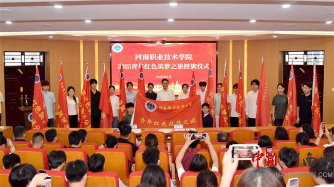 中新河南網(wǎng)6月22日電(尹霞) 6月19日上午,河南職業(yè)技術(shù)學(xué)院2025年“青年紅色筑夢之旅”活動(dòng)授旗儀式在勤業(yè)樓239會(huì)議室舉行。校黨委書記厲勵(lì)為紅旅分隊(duì)授旗并作動(dòng)員講話。校黨委委員、副校長任楓軒出席儀式。各二級(jí)學(xué)院黨總支書記、副書記、雙創(chuàng)專干以及13支紅旅分隊(duì)師生共計(jì)140余人參加活動(dòng)。