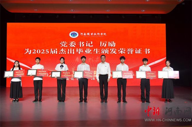 校黨委書(shū)記厲勵(lì)為2025屆杰出畢業(yè)生頒發(fā)獎(jiǎng)金和榮譽(yù)證書(shū)