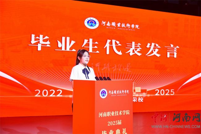 汽車(chē)與交通學(xué)院學(xué)生劉祎作為畢業(yè)生代表發(fā)言,表示全體畢業(yè)生無(wú)論走到哪里,都會(huì)牢記“德厚 技高 務(wù)實(shí) 創(chuàng)新”的校訓(xùn),用行動(dòng)書(shū)寫(xiě)屬于河職人的榮光。
