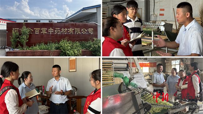 第一站,團隊來到當?shù)匾患宜帍S公司。公司老板劉濤帶著成員們參觀了金銀花加工車間。劉濤一邊指著車間金銀花半成品,一邊講述著它從采摘到制藥的全過程,以及背后源遠流長的醫(yī)藥文化:“你看這金銀花,不僅藥用價值高,我們這兒祖祖輩輩都靠它生活,它就是我們的‘致富花’。”聽完介紹,團隊成員們拿出“銀花妙創(chuàng)”系列文創(chuàng)產(chǎn)品,向劉濤展示了將金銀花文化融入現(xiàn)代文創(chuàng)的思路,劉濤看著這些充滿創(chuàng)意的設計,連連稱贊,認為這為金銀花的發(fā)展提供了新方向。