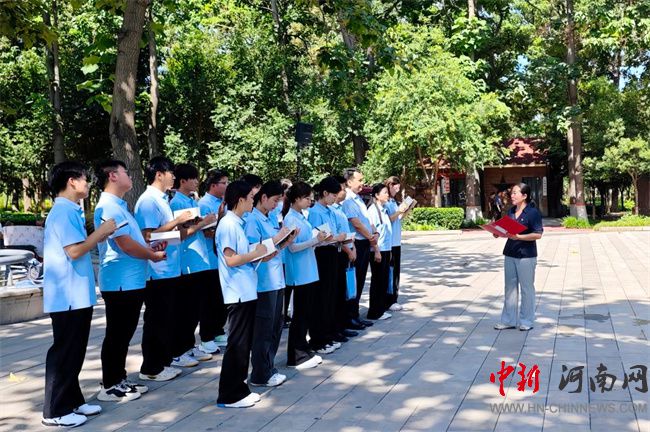 中新河南網(wǎng)7月7日電(郭爽) 7月5日上午,河南職業(yè)技術(shù)學(xué)院黨委副書記、工會(huì)主席田華在蘭考焦桐樹下,為參加學(xué)校“用腳步丈量河南——行走的思政課”暑期思政實(shí)踐活動(dòng)開封站的同學(xué)講授專題思政課,激勵(lì)青年學(xué)子在追尋榜樣足跡、感悟精神力量的過程中,深刻體會(huì)傳承紅色基因、擔(dān)當(dāng)時(shí)代使命的重大意義。黨委宣傳部負(fù)責(zé)同志參加活動(dòng)。