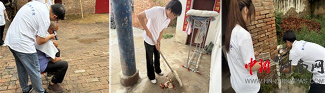 實(shí)踐團(tuán)成員為老人理發(fā)、打掃庭院及濾網(wǎng)清洗