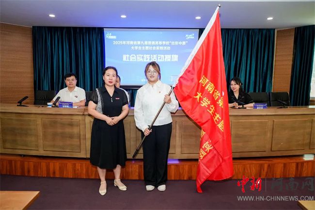 田華為本次“出彩中原”大學(xué)生“逐光而行 智創(chuàng)未來”主題社會實(shí)踐活動授旗。
