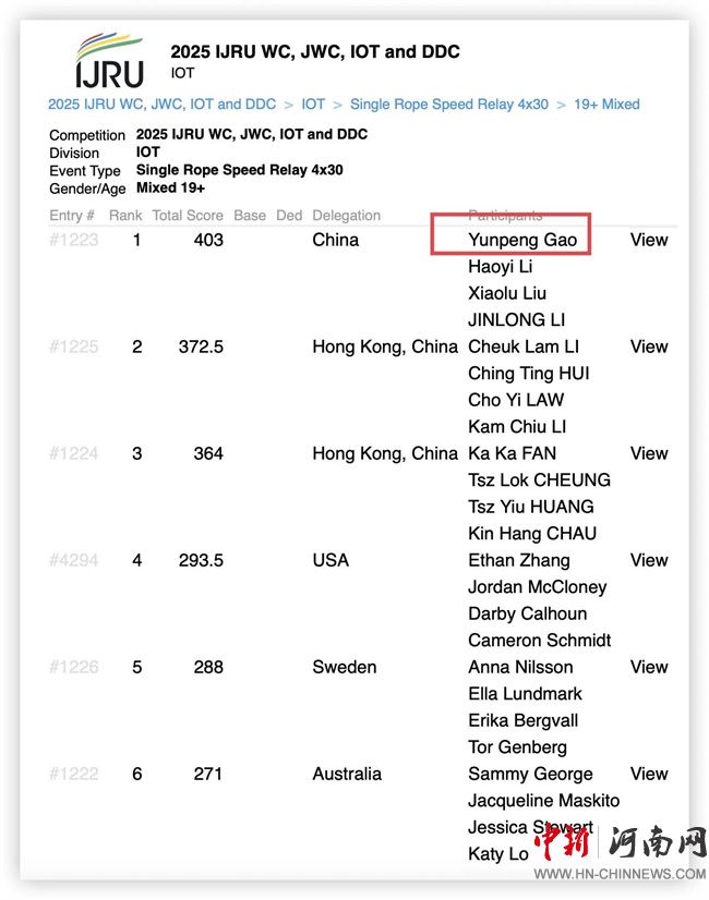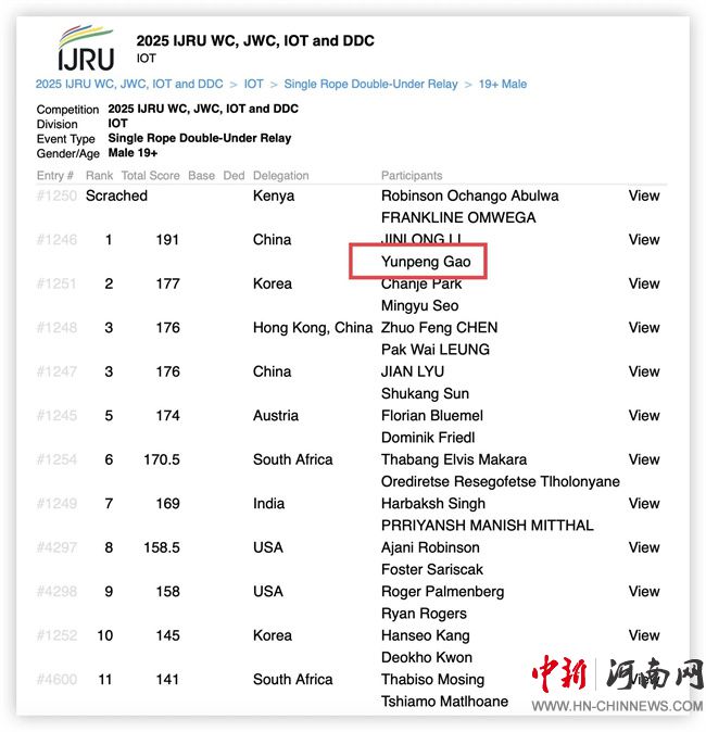 高云鵬是河南女子職業(yè)學(xué)院體育與健康學(xué)院運(yùn)動健康指導(dǎo)專業(yè)23級學(xué)生,他在跳繩項目上已訓(xùn)練長達(dá)六年。去年12月,他在全國跳繩錦標(biāo)賽中脫穎而出,獲得入圍世錦賽的資格。在今年6月結(jié)束的2025全國跳繩聯(lián)賽(長沙站)中,他一舉奪得了個人花樣跳、30秒單搖跳、3分鐘單搖和4×30秒單搖接力四項冠軍。