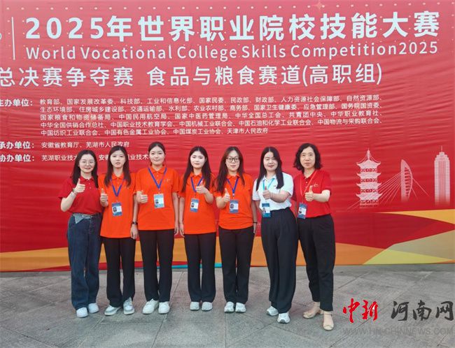 中新河南網(wǎng)8月28日電(侯麗芬) 8月26日,2025年世界職業(yè)院校技能大賽食品與糧食賽道(高職組)總決賽爭(zhēng)奪賽在安徽蕪湖落幕。河南職業(yè)技術(shù)學(xué)院參賽團(tuán)隊(duì)與來自全國31個(gè)省、市、自治區(qū)、94所高職院校的100支代表隊(duì)同臺(tái)競(jìng)技,憑借過硬的專業(yè)功底、無縫的團(tuán)隊(duì)協(xié)作與突破創(chuàng)新的實(shí)戰(zhàn)能力勇奪金獎(jiǎng),實(shí)現(xiàn)了學(xué)校在該項(xiàng)賽事中的歷史性突破。