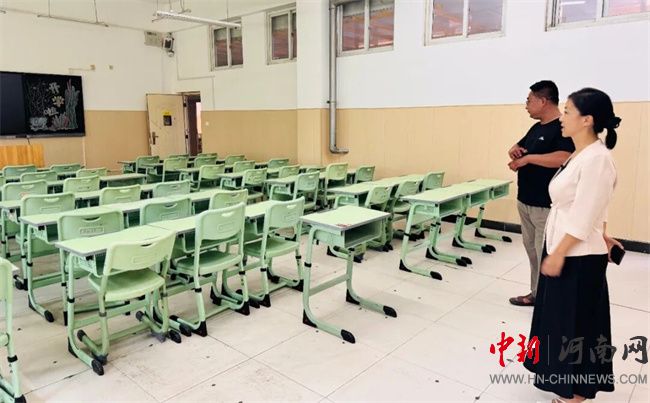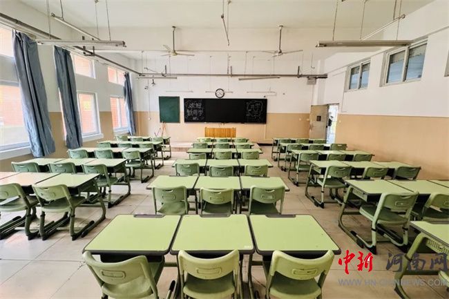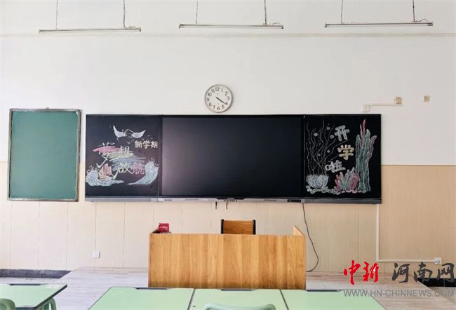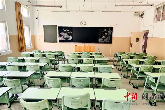 教室的課桌椅已逐一套裝調(diào)試,黑板旁的智能交互屏預(yù)存了開學(xué)第一課的課件,連粉筆盒都按「左白右彩」的標(biāo)準(zhǔn)整齊擺放。