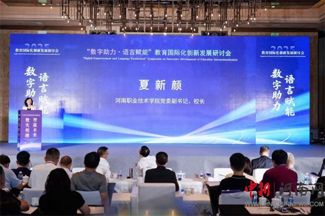 中新河南網(wǎng)8月31日電(郭一幔) 8月28日上午,“數(shù)字助力,語言賦能”教育國際化創(chuàng)新發(fā)展研討會在鄭州舉辦。海內(nèi)外行業(yè)協(xié)會、研究機構(gòu)、高校、職業(yè)院校、出海企業(yè)領(lǐng)導(dǎo)及代表參會。河南職業(yè)技術(shù)學(xué)院黨委副書記、校長夏新顏應(yīng)邀出席并致辭。
