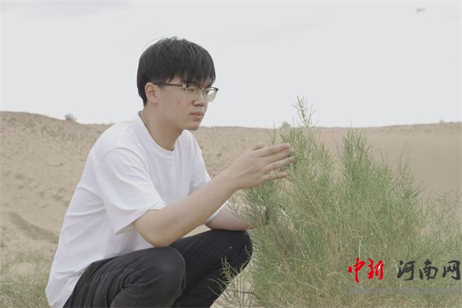 宋忠碩查看梭梭樹長(zhǎng)勢(shì)