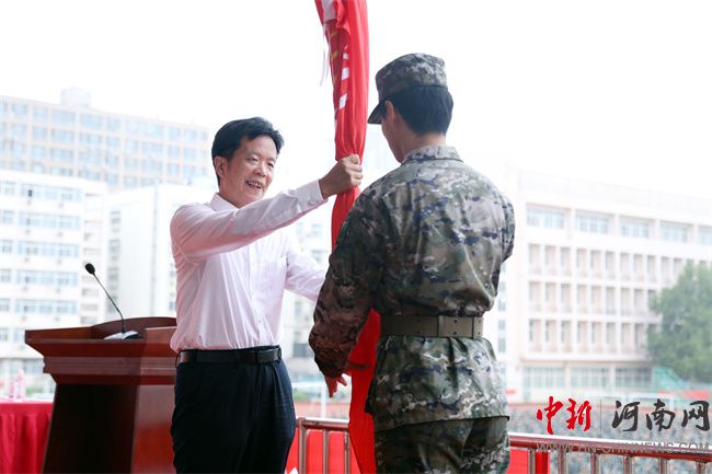 大會現(xiàn)場,李廣慧、李志萍分別向兩校區(qū)軍訓團授旗。軍訓教官代表張鵬、楊勇發(fā)出號召,鼓勵新生直面考驗、超越自我,以昂揚斗志開啟迷彩青春。(河南水利與環(huán)境職業(yè)學院供稿)
