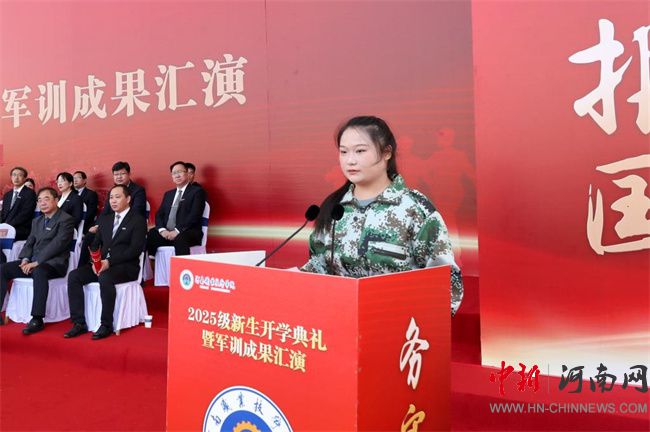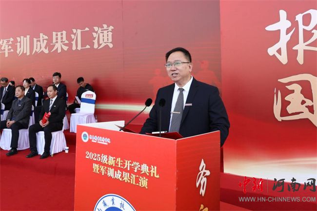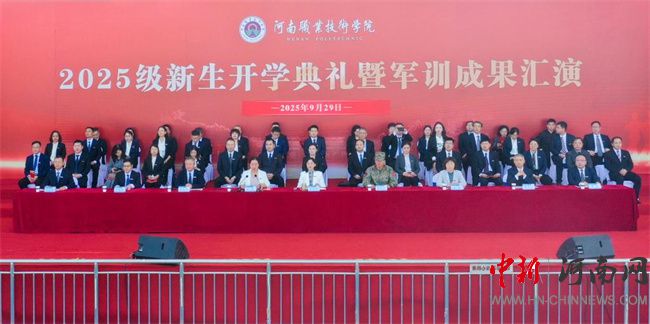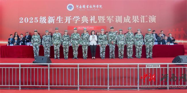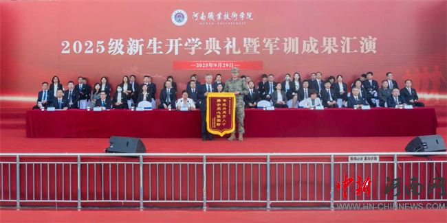 中新河南網(wǎng)9月30日電(劉明庫) 9月29日上午,河南職業(yè)技術(shù)學(xué)院舉行2025級新生開學(xué)典禮暨軍訓(xùn)成果匯演。夏新顏、田華、肖瓏、李玉峰、盛興文、任楓軒、魯冬、朱永寬等在校校領(lǐng)導(dǎo),金水區(qū)人民武裝部選派總教官張利南出席典禮。校屬各單位黨政負(fù)責(zé)人,各二級學(xué)院黨總支副書記、團(tuán)總支(學(xué)工辦)書記、新生輔導(dǎo)員及2025級全體新生參加典禮。校黨委副書記、工會主席田華主持典禮。