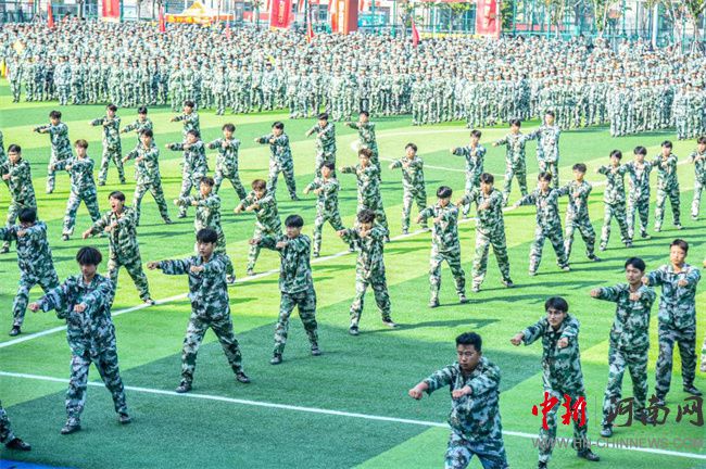 軍訓(xùn)成果匯演分為分列式、數(shù)字方隊、男子擒敵拳、女子匕首操和旗語操等五個部分。12個二級學(xué)院方隊和男女劈槍方隊陣容協(xié)調(diào)統(tǒng)一、口號嘹亮有力,他們依次走過主席臺接受檢閱。2400人的數(shù)字合唱方陣以身為筆,以行為墨,在軍訓(xùn)場上精準(zhǔn)呈現(xiàn)出壯麗的數(shù)字畫卷和震撼人心的軍歌聲響;鐵骨錚錚貫長松的男子擒敵拳;巾幗鋒芒勝寒霜的女子匕首操;旗風(fēng)獵獵作雷聲的千人旗語操,多方位展示了2025級新生團(tuán)結(jié)、拼搏、奮進(jìn)的良好風(fēng)貌,贏得全校師生的陣陣掌聲。
