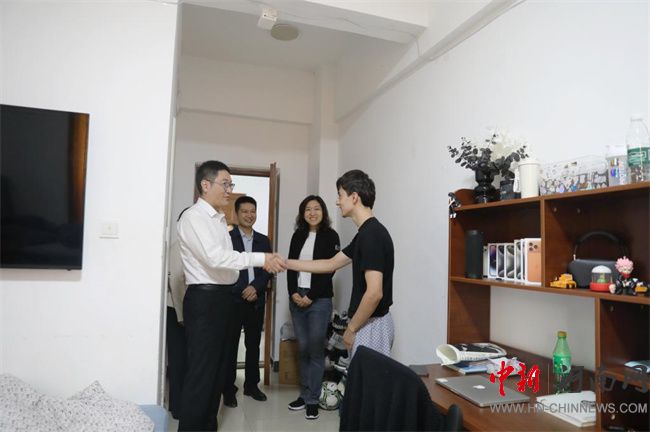 在健行樓8樓,厲勵一行看望了留校的留學(xué)生。他走進留學(xué)生宿舍,與留學(xué)生們親切交流,詢問他們的假期生活安排、飲食起居情況,以及是否有需要學(xué)校協(xié)調(diào)解決的困難。得知留學(xué)生們都喜歡中國傳統(tǒng)文化、喜歡中國飲食時,厲勵欣慰地表示:“學(xué)校是你們在中國的‘家’,假期里也要讓你們感受到家的溫暖。”他向陪伴留學(xué)生的值班老師致謝:“感謝你們用心照顧留學(xué)生的生活,搭建起文化溝通的橋梁。”針對留學(xué)生管理工作,他叮囑相關(guān)部門工作人員,外事無小事,一定要管理好、服務(wù)好、保障好留學(xué)生的學(xué)習(xí)和生活,持續(xù)關(guān)注他們的思想動態(tài)和生活需求,豐富假期文化活動,幫助他們更好地融入校園、了解中國,同時做好他們的安全宣傳教育,確保度過一個充實又安全的假期。