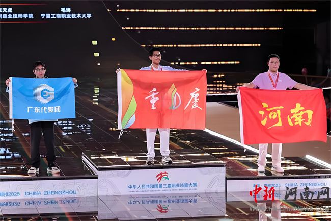 當(dāng)主持人宣布“獲得銅牌的是河南隊(duì)——王旭”時(shí),他愣了幾秒,快步走向領(lǐng)獎(jiǎng)臺(tái)。銅牌沉甸甸的,是18個(gè)月熬夜、練習(xí)的見證。“所有辛苦,在拿到獎(jiǎng)牌時(shí)都值了”,他說。