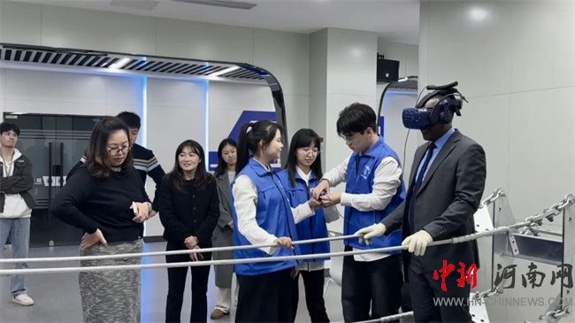 作為電力學(xué)院常態(tài)化志愿服務(wù)與國(guó)際化辦學(xué)展示相結(jié)合的品牌項(xiàng)目,本次接待任務(wù)主要由志愿服務(wù)隊(duì)的師生骨干承擔(dān)。在220kV智能變電站實(shí)訓(xùn)基地,志愿者們運(yùn)用扎實(shí)的電力專業(yè)知識(shí)和流暢的英語(yǔ)溝通能力,主動(dòng)為來(lái)賓系統(tǒng)講解了智能變電站的設(shè)備原理與教學(xué)應(yīng)用。他們沉著自信的現(xiàn)場(chǎng)表現(xiàn)、細(xì)致周到的服務(wù)引導(dǎo),不僅傳遞了專業(yè)知識(shí),更展現(xiàn)了電專學(xué)子樂(lè)于奉獻(xiàn)、昂揚(yáng)向上的精神風(fēng)貌,贏得了代表團(tuán)成員的頻頻贊許。在綠色電力虛擬仿真實(shí)訓(xùn)基地,志愿者們精心組織,引導(dǎo)來(lái)賓親身體驗(yàn)“VR高空走線”等創(chuàng)新實(shí)訓(xùn)項(xiàng)目。他們熟練的操作演示和耐心的互動(dòng)講解,使外賓們深度感受了前沿科技融入電力教學(xué)的魅力,獲得了充分肯定。