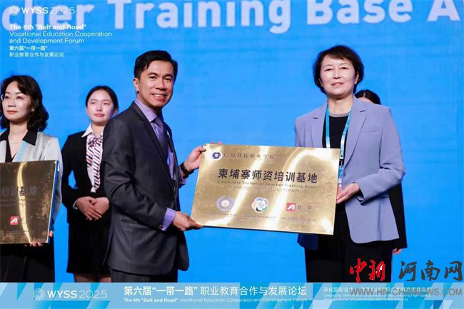 論壇期間,柬埔寨勞工與職業(yè)培訓(xùn)部國(guó)務(wù)秘書(shū)謝顧所授予信陽(yáng)科技職業(yè)學(xué)院“柬埔寨師資培訓(xùn)基地”牌匾,標(biāo)志著該校在推進(jìn)國(guó)際化辦學(xué)、服務(wù)“一帶一路”職業(yè)教育合作方面邁出了實(shí)質(zhì)性步伐。