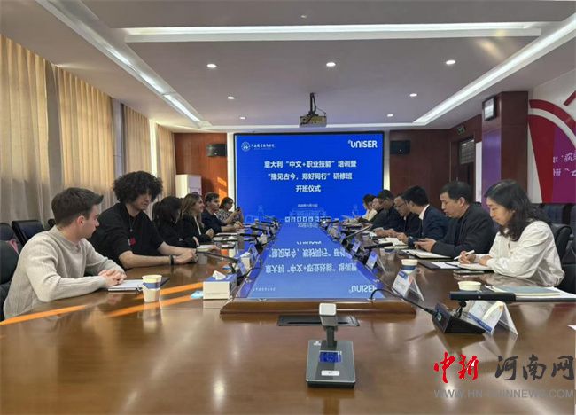 中新河南網(wǎng)11月18日電(閆玉潔) 11月13日上午,河南職業(yè)技術(shù)學(xué)院首批歐洲青年學(xué)生“中文+職業(yè)技能”培訓(xùn)暨“豫見古今 鄭好同行”研修項(xiàng)目開班儀式在勤業(yè)樓332會議室舉行。校黨委委員、副校長魯冬出席并致辭。歐洲人才國際交流中心(UNISER)帶隊(duì)老師Vittoria Morosi和意大利弗洛朗蒂職業(yè)教育學(xué)院、倫巴第機(jī)電一體化產(chǎn)業(yè)技術(shù)學(xué)院等歐洲院校7名青年學(xué)生,以及國際合作交流處、國際教育學(xué)院相關(guān)負(fù)責(zé)同志參加開班儀式。