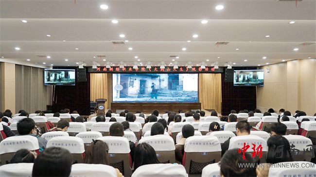 中新河南網(wǎng)11月24日電(徐磊/文) 11月21日,河南測(cè)繪職業(yè)學(xué)院工會(huì)組織教職工代表近400人在報(bào)告廳觀看電影《大別山久生》。