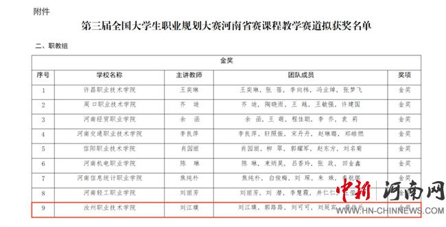 此次大賽決賽,由河南省教育廳主辦,在河南經(jīng)貿(mào)職業(yè)學(xué)院舉行。此次榮膺金獎(jiǎng),實(shí)現(xiàn)了該校在該項(xiàng)賽事的歷史性突破,彰顯了該校課程建設(shè)與教學(xué)創(chuàng)新的顯著成效。