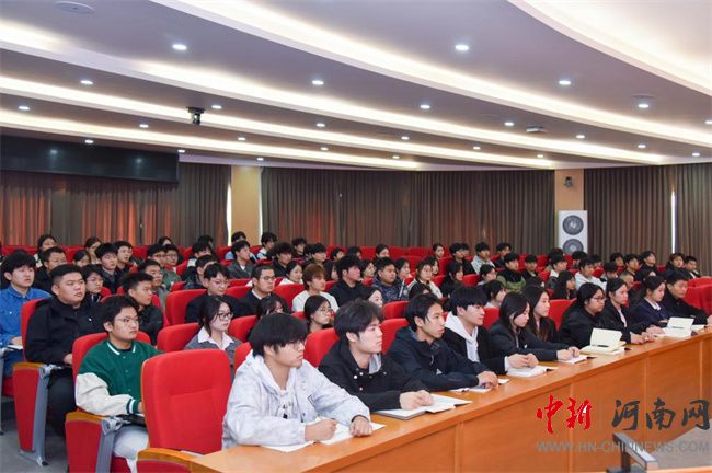 中新河南網(wǎng)12月3日電(胡海涵) 12月1日下午,河南職業(yè)技術學院黨委副書記、校長夏新顏以《深學細悟全會精神傳承弘揚抗戰(zhàn)精神——奮力書寫為中國式現(xiàn)代化挺膺擔當?shù)那啻浩隆窞轭},為汽車與交通學院、文化旅游學院青馬班學員、新能源253班學生宣講黨的二十屆四中全會精神。汽車與交通學院、文化旅游學院副科級以上干部及馬克思主義學院思政課教師現(xiàn)場聆聽。