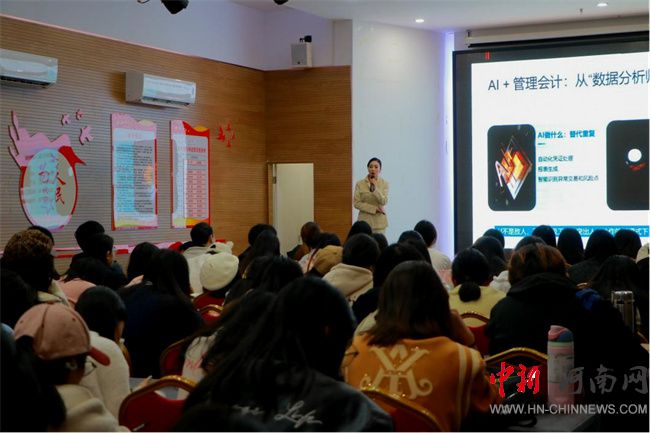 王玉女士強調(diào),財稅專業(yè)的學(xué)生不應(yīng)將視野局限于傳統(tǒng)財務(wù)崗位,而應(yīng)主動擁抱變化,探索在管理會計、數(shù)據(jù)分析、企業(yè)管理、創(chuàng)新創(chuàng)業(yè)等多個領(lǐng)域的發(fā)展機遇。她通過生動的案例,闡述了如何將財稅專業(yè)知識與管理會計、大數(shù)據(jù)、云計算、AI模型等其他領(lǐng)域的技能相結(jié)合,構(gòu)建個人獨特的核心競爭力。同時,她也鼓勵同學(xué)們盡早進行職業(yè)規(guī)劃,勇于嘗試,在實踐中不斷明晰方向,提升綜合素養(yǎng)。