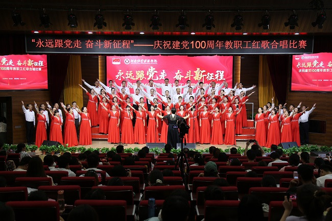 胸懷千秋偉業(yè),恰是百年風(fēng)華。唱響百年歲月,傳承紅色基因,全體教職工將堅(jiān)定信念跟黨走、擔(dān)當(dāng)作為新時(shí)代、立足崗位做貢獻(xiàn),以昂揚(yáng)姿態(tài)投入學(xué)校建設(shè)新征程,不斷書寫新的歷史、創(chuàng)造新的輝煌。