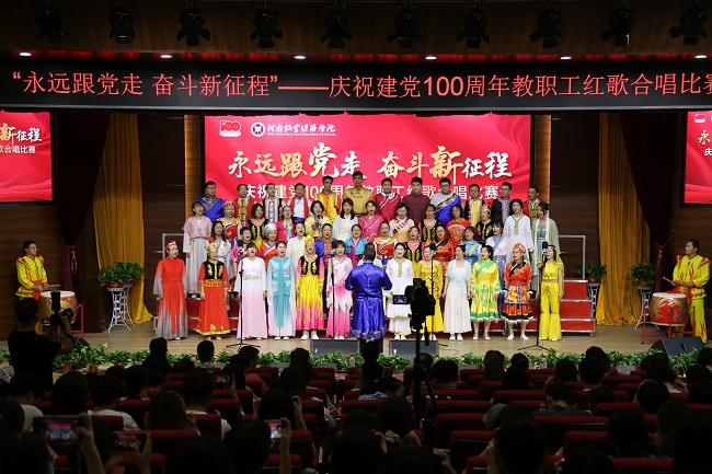 各參賽隊(duì)伍著裝統(tǒng)一,動(dòng)作整齊,精神飽滿,激情歌唱。他們以昂揚(yáng)向上的精神風(fēng)貌,懷著對(duì)黨的無(wú)比熱愛(ài)之情,或鏗鏘有力、或深情婉轉(zhuǎn)地演繹了一首首耳熟能詳、感人肺腑的紅色歌曲,回顧黨的光輝歷程,謳歌黨的豐功偉績(jī),宣傳黨的輝煌成就,弘揚(yáng)黨的優(yōu)良傳統(tǒng),共同唱響共產(chǎn)黨好、社會(huì)主義好的時(shí)代主旋律,充分展示河南牧業(yè)經(jīng)濟(jì)學(xué)院教職工感黨恩、聽(tīng)黨話、跟黨走的豪邁情懷,激發(fā)了大家不忘初心、牢記使命、追求卓越、只爭(zhēng)朝夕的奮斗激情。