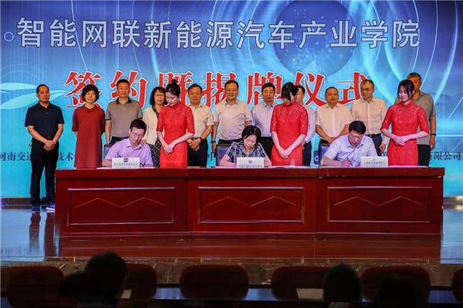 會(huì)上,產(chǎn)、學(xué)、研三方代表在與會(huì)領(lǐng)導(dǎo)見(jiàn)證下,正式簽署戰(zhàn)略合作協(xié)議。曹焱、成波、劉慧兵一起為產(chǎn)業(yè)學(xué)院揭牌。來(lái)自省內(nèi)外的院校代表、企業(yè)代表和河南交院師生代表近200人齊聚活動(dòng)現(xiàn)場(chǎng),共同見(jiàn)證產(chǎn)學(xué)研深度融合合作模式開(kāi)啟。