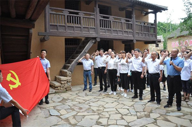 隨后,全體黨員參觀了濟(jì)源抗日民主政府辦公舊址,聆聽(tīng)了于思禮烈士的英雄事跡,追憶了革命先烈為實(shí)現(xiàn)民族獨(dú)立信念如鐵、百折不撓、無(wú)私奉獻(xiàn)的革命精神。面對(duì)鮮紅的黨旗,在徐智深同志的領(lǐng)誓下,黨員干部們自覺(jué)整齊列隊(duì),莊嚴(yán)肅立,舉起右拳,重溫對(duì)黨的錚錚誓言,表達(dá)了對(duì)黨忠誠(chéng)和為黨的事業(yè)奮斗終身的決心。