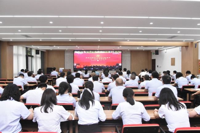 校黨政領(lǐng)導(dǎo)班子成員、科級(jí)及以上干部、黨委職能部門(mén)全體人員觀(guān)看“七一勛章”頒授儀式