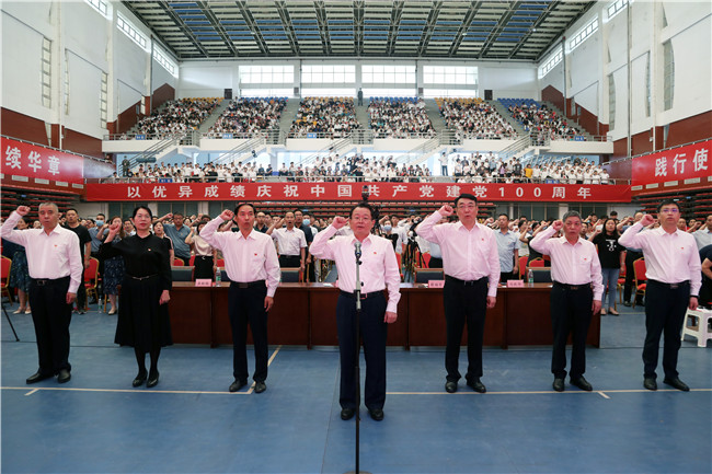 表彰會(huì)結(jié)束后,面向莊嚴(yán)的黨旗,黨委書(shū)記苗晉琦帶領(lǐng)全場(chǎng)老黨員重溫入黨誓詞、新黨員入黨宣誓。一句句鏗鏘有力的誓言、一張張堅(jiān)毅的面容表達(dá)了鄭職人堅(jiān)定不移跟黨走的莊嚴(yán)承諾,彰顯了鄭職人不忘初心砥礪前行的使命擔(dān)當(dāng)。