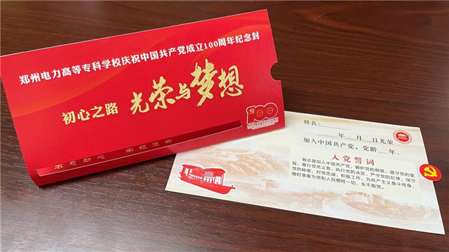作為慶祝偉大中國(guó)共產(chǎn)黨成立100周年的特別環(huán)節(jié),學(xué)校為每一名黨員設(shè)計(jì)制作了主題為“初心之路——光榮與夢(mèng)想”的共產(chǎn)黨員紀(jì)念封,旨在通過(guò)回顧初心使命,把苦難輝煌的過(guò)去、日新月異的現(xiàn)在、光明宏大的未來(lái)貫通起來(lái),不斷重溫共產(chǎn)黨人的初心和使命,更加堅(jiān)定對(duì)馬克思主義的信仰,對(duì)社會(huì)主義、共產(chǎn)主義的信念,對(duì)實(shí)現(xiàn)中華民族偉大復(fù)興中國(guó)夢(mèng)的信心。