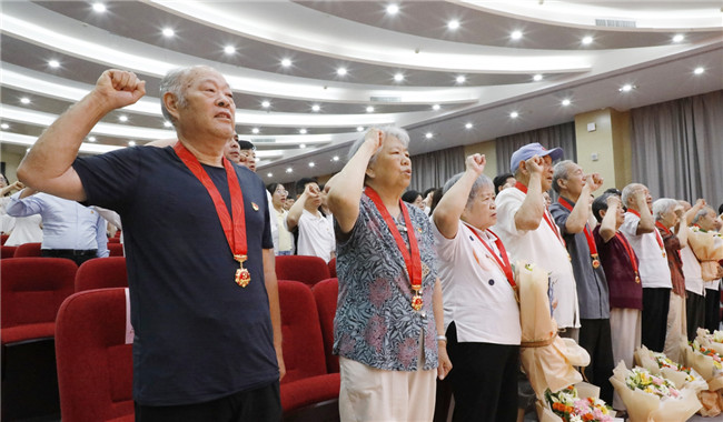 大會(huì)開始前,學(xué)校領(lǐng)導(dǎo)還為滿50年黨齡的老黨員同志佩戴了“光榮在黨50年”紀(jì)念章,并向他們致以美好祝福,感謝他們?yōu)榻逃聵I(yè)、立德樹人所做出的貢獻(xiàn)。
