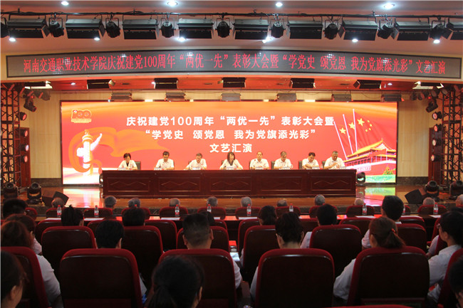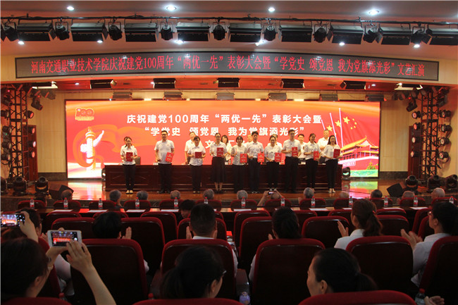 中新河南網(wǎng)7月5日電(魏豪 劉桂峰 王曉 葉展)在黨的百年華誕來(lái)臨之際,近日,河南交通職業(yè)技術(shù)學(xué)院(以下簡(jiǎn)稱“河南交院”)舉行慶祝建黨100周年“兩優(yōu)一先”表彰大會(huì)暨“學(xué)黨史 頌黨恩 我為黨旗添光彩”文藝匯演活動(dòng)。校領(lǐng)導(dǎo)、黨齡超50年老黨員代表、受表彰全體人員、機(jī)關(guān)全體人員、各黨總支書(shū)記、支部書(shū)記以及黨員、學(xué)生代表400余人參加活動(dòng)。