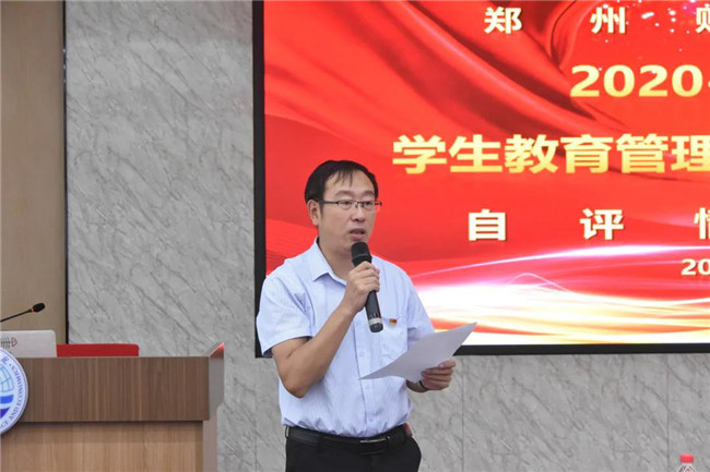 陳志強(qiáng)宣布2020-2021學(xué)年學(xué)生教育管理工作先進(jìn)單位評(píng)選自評(píng)情況匯報(bào)會(huì)正式開(kāi)始。各二級(jí)學(xué)院匯報(bào)人按抽簽順序依次上臺(tái),按照量化考核標(biāo)準(zhǔn)要求,從學(xué)生工作管理方法,思想政治教育,日常行為管理和特色文化活動(dòng)等多個(gè)方面匯報(bào)了本學(xué)院一學(xué)年來(lái)的學(xué)生管理工作成果。