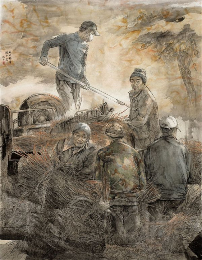 原鵬東的國畫作品《風(fēng)吹稻香滿衣裳》人物注重寫實,氣韻生動,筆觸細(xì)膩,渾然天成,在展覽中脫穎而出。多年來,他的“有強(qiáng)烈的生命力”、來自“最基層的老百姓”繪畫作品深受專家及繪畫愛好者之青睞,贏得各界人士一致好評。