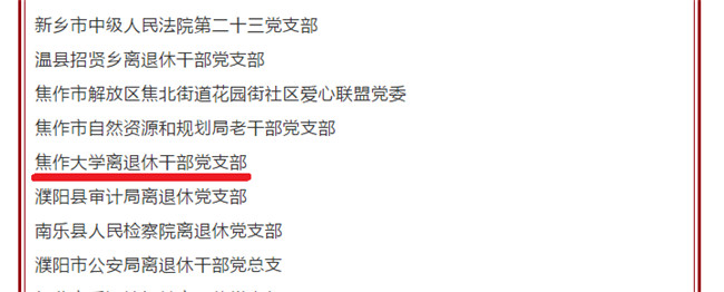 焦作大學離退休黨支部榮獲第二批省級“示范離退休干部黨支部”稱號