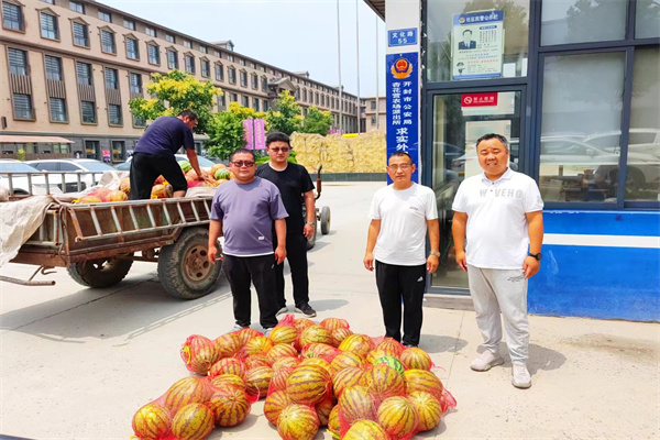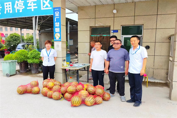 農(nóng)場黨委政府安排經(jīng)濟辦、工信辦工作人員先后到轄區(qū)河南木之秀家具有限公司、河南共創(chuàng)起重科技有限公司、開封市政通市政工程有限公司、河南簡一家居有限公司、河南開閥閥門有限公司等18家企業(yè),為企業(yè)職工免費送去了近12000斤西瓜,為高溫下辛勤工作的職工帶去了陣陣清涼,送去了農(nóng)場黨委政府的濃濃關(guān)懷。