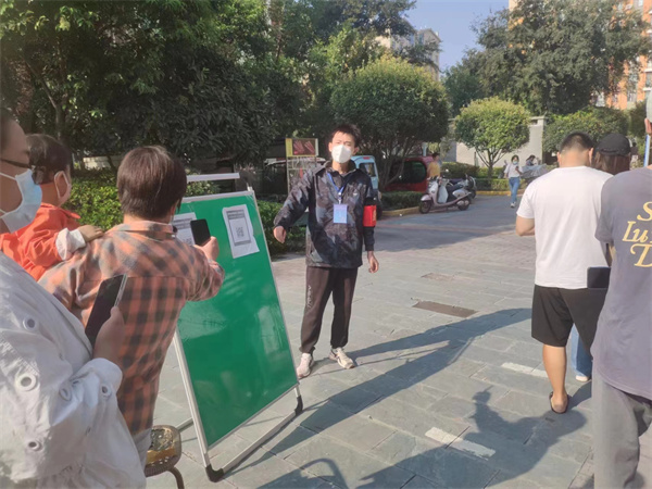 在現(xiàn)場她們更是不惜余力。因為所在的上河城小區(qū)人數(shù)巨大,現(xiàn)場秩序不好維護。他們總是不厭其煩的講解入場的政策與程序,細心檢查每一個人的入場碼和健康碼。對一些心情急躁的居民,他們總