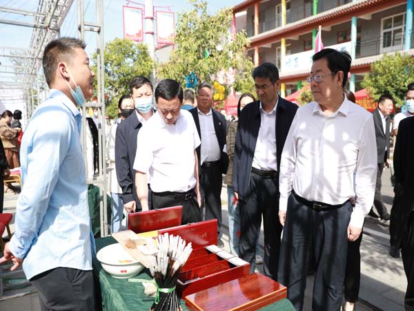 記者來(lái)到“農(nóng)業(yè)非遺文化展”現(xiàn)場(chǎng)?吹讲粌H有開(kāi)封汴繡、古箏、剪紙、拓片、麥桿畫(huà)、磚雕,以及葫蘆烙畫(huà),汝陽(yáng)劉毛筆等,還邀請(qǐng)國(guó)家級(jí)非遺《超化吹歌》展演,以及中國(guó)牡丹畫(huà)第一村的農(nóng)民畫(huà)家前來(lái)交流。農(nóng)民朋友在這里近距離感受農(nóng)業(yè)非遺文化神奇,喚起人們對(duì)文化記憶和鄉(xiāng)土風(fēng)情的認(rèn)同感。展覽凸現(xiàn)了古都厚重文化與開(kāi)封新時(shí)代文化的交融興盛,給人留下非常深刻的印象。