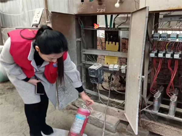 水稻鄉(xiāng)回回寨社區(qū)網(wǎng)格員在轄區(qū)內(nèi)企業(yè)進(jìn)行消防安全隱患排查