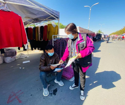 宣傳人員在集上向攤主、群眾發(fā)放用火、用電宣傳頁,告知群眾由于近期天氣干燥易屬于火災(zāi)高發(fā)期,煙頭不要亂扔、要注意家中孩子不要玩兒火。并提醒群