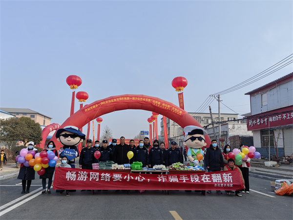 中新河南網(wǎng)2月5日電:2月5日,正值元宵佳節(jié),開封市城鄉(xiāng)一體化示范區(qū)杏花營農(nóng)場隆重舉辦第一屆文化藝術(shù)節(jié)暨“迎新春 鬧元宵”文藝匯演活動。在活動現(xiàn)場,農(nóng)場綜治辦邀請示范區(qū)公安分局反詐中心聯(lián)合轄區(qū)派出所共同開展反電詐、禁種鏟毒集中宣傳活動。
