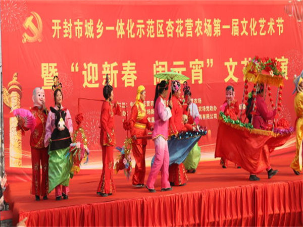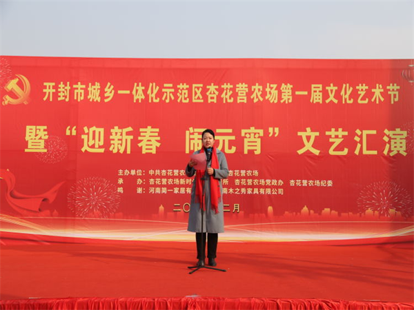 中新河南網(wǎng)2月5日電:為深入學(xué)習(xí)宣傳黨的二十大精神,活躍轄區(qū)居民文化生活,營(yíng)造歡樂(lè)的元宵佳節(jié)氛圍。2月5日上午,開(kāi)封市城鄉(xiāng)一體化示范區(qū)杏花營(yíng)農(nóng)場(chǎng)隆重舉辦“我們的中國(guó)夢(mèng),文化進(jìn)萬(wàn)家”主題第一屆文化藝術(shù)節(jié)暨“迎新春 鬧元宵”文藝匯演活動(dòng)。示范區(qū)人大工作聯(lián)絡(luò)處主任楊杰,黨工委委員、宣傳部部長(zhǎng)王志英,文化旅游局局長(zhǎng)辛艷麗、教體局局長(zhǎng)聶愛(ài)軍、文明辦主任張忠?guī)X、婦聯(lián)主席程娟,紀(jì)工委委員王勇,杏花營(yíng)農(nóng)場(chǎng)班子成員、機(jī)關(guān)干部職工、受邀“市、區(qū)365好人”、“好婆婆好媳婦”、“美麗庭院戶(hù)”、“先進(jìn)工作者”以及各社區(qū)“兩委”干部及群眾共計(jì)600余人參加活動(dòng)。